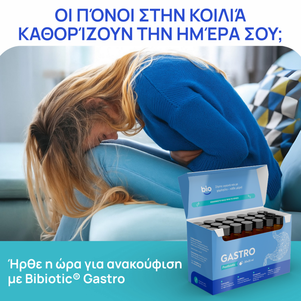 Αν αναζητάτε στοχευμένη και επιστημονικά τεκμηριωμένη υποστήριξη για την αποκατάσταση της εντερικής ισορροπίας, ώστε να αντιμετωπίσετε επίμονους πόνους στην κοιλιά και φούσκωμα, η σύγχρονη επιστήμη προσφέρει μια αποτελεσματική λύση. Το Bibiotic® Gastro είναι το πρώτο βουλγαρικό μεταβιοτικό, αναπτυγμένο μετά από περισσότερα από 5 χρόνια επιστημονικής έρευνας, για την υποστήριξη της υγείας του γαστρεντερικού συστήματος. Περιέχει 100% φυσικούς βακτηριακούς μεταβολίτες, οι οποίοι βοηθούν στη μείωση του φουσκώματος, ρυθμίζουν την περισταλτικότητα και βελτιώνουν την πέψη.