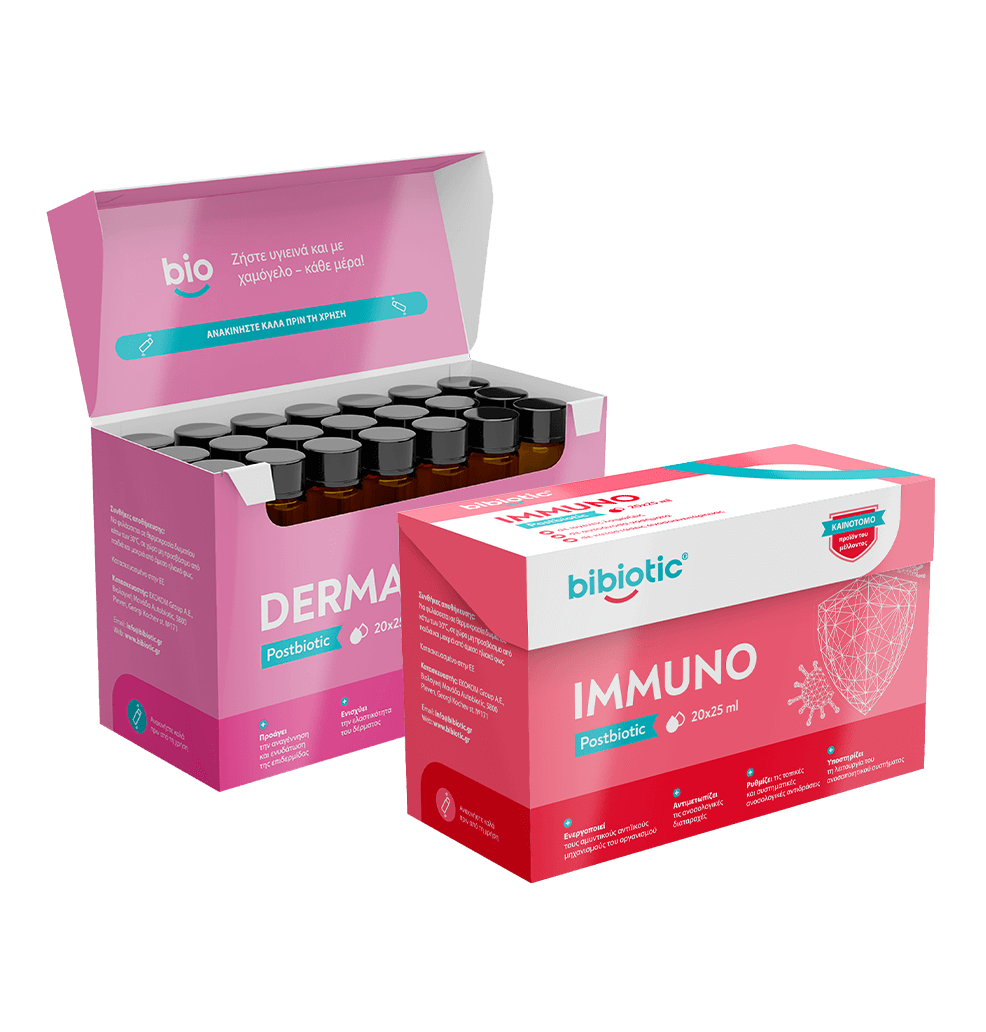 Το Bibiotic® Derma + Bibiotic® Immuno είναι ένα πακέτο που προσφέρει στοχευμένη φροντίδα για την υγεία και την ισορροπία του οργανισμού σε διαφορετικές περιόδους.
