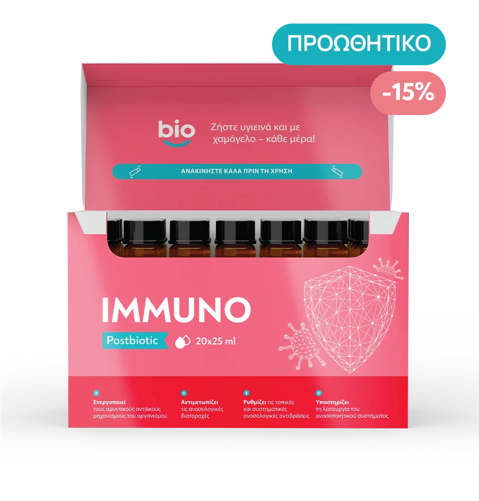 Ως ισχυρός ανοσορυθμιστής, το μεταβιοτικό BIBIOTIC® Immuno αποτελεί ένα αποτελεσματικό θεραπευτικό μέσο με αντιιϊκή δράση. Αυτή είναι μία από τις πιο πολύτιμες ιδιότητές του. Ως τέτοιο, παρουσιάζει υψηλή αποτελεσματικότητα σε λοιμώξεις που προκαλούνται από ιούς γρίπης, κορωνοϊούς και άλλους ιογενείς παθογόνους παράγοντες και μπορεί να χρησιμοποιηθεί ως βασικό στοιχείο σε θεραπευτικά πρωτόκολλα. Οι ιογενείς λοιμώξεις συνήθως δεν αντιμετωπίζονται απευθείας με φαρμακευτική αγωγή, καθώς η κύρια μάχη δίνεται από το ανοσοποιητικό σύστημα του οργανισμού. Παρέχοντας επαρκή εξωτερική υποστήριξη, το ανοσοποιητικό σύστημα μπορεί να ανταποκριθεί ταχύτερα και αποτελεσματικότερα στον παθογόνο παράγοντα. Ως ανοσορυθμιστής, το BIBIOTIC® Immuno ενεργοποιεί και ρυθμίζει την ανοσολογική απόκριση, βελτιώνοντας την ικανότητα του οργανισμού να καταπολεμά τις ιογενείς λοιμώξεις. Επιπλέον, το προϊόν παρέχει στον οργανισμό ποικιλία βιολογικά δραστικών ουσιών, όπως ένζυμα, βιταμίνες, οργανικά οξέα και άλλους μεταβολίτες, που συμβάλλουν στη μείωση των συμπτωμάτων και των επιπλοκών που σχετίζονται με τις λοιμώξεις, όπως ναυτία, έμετο, διάρροια, κοιλιακός πόνος και δυσφορία. Το μεταβιοτικό υποστηρίζει επίσης τον οργανισμό με αντιβακτηριακούς μεταβολίτες, μειώνοντας τον κίνδυνο δευτερογενών βακτηριακών λοιμώξεων. Επιπλέον, το BIBIOTIC® Immuno ενισχύει τον εντερικό φραγμό, περιορίζοντας τη διείσδυση τοξινών και παθογόνων στην κυκλοφορία του αίματος και συμβάλλοντας έτσι στην πρόληψη περαιτέρω επιπλοκών που σχετίζονται με τις λοιμώξεις.
