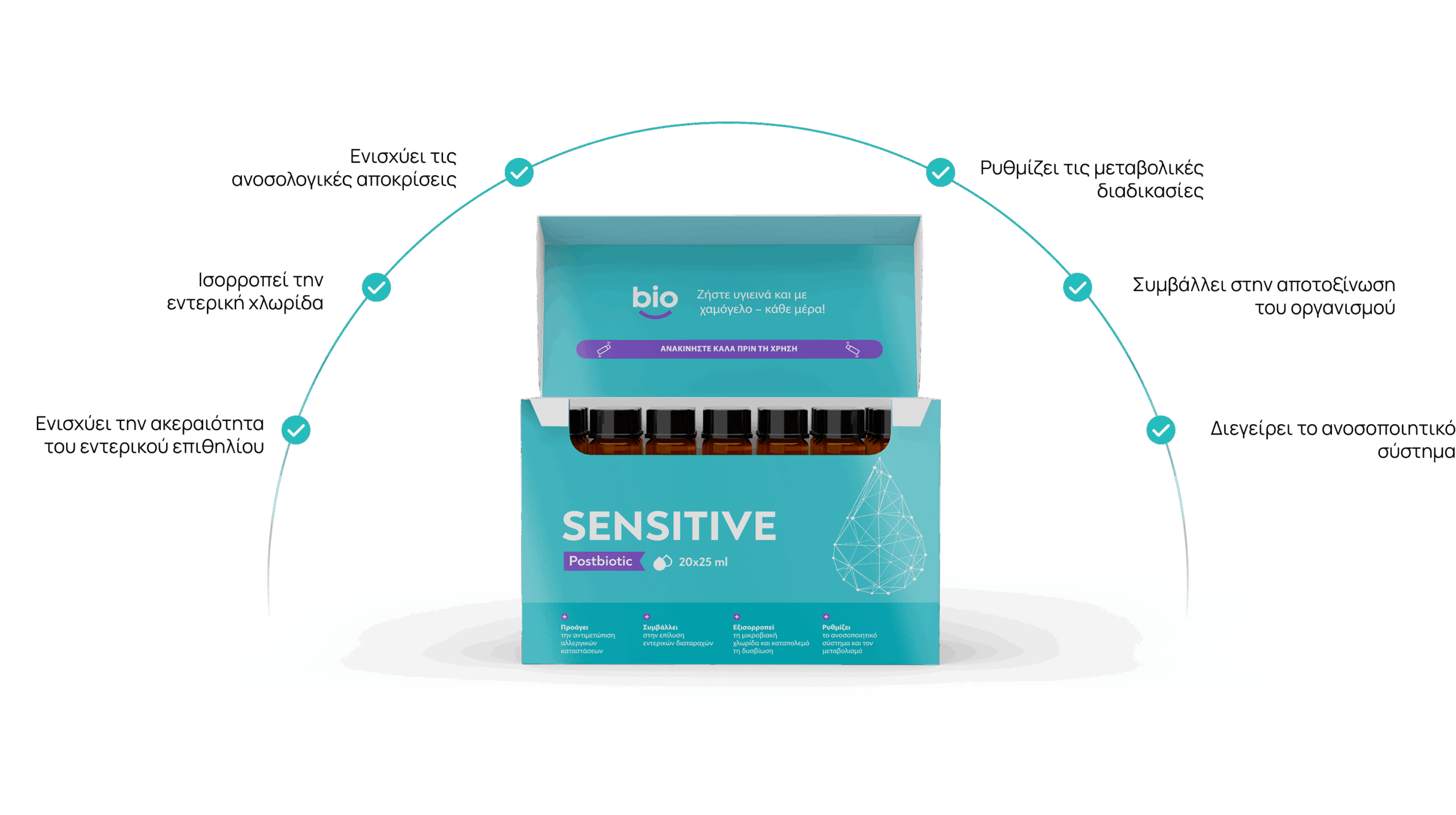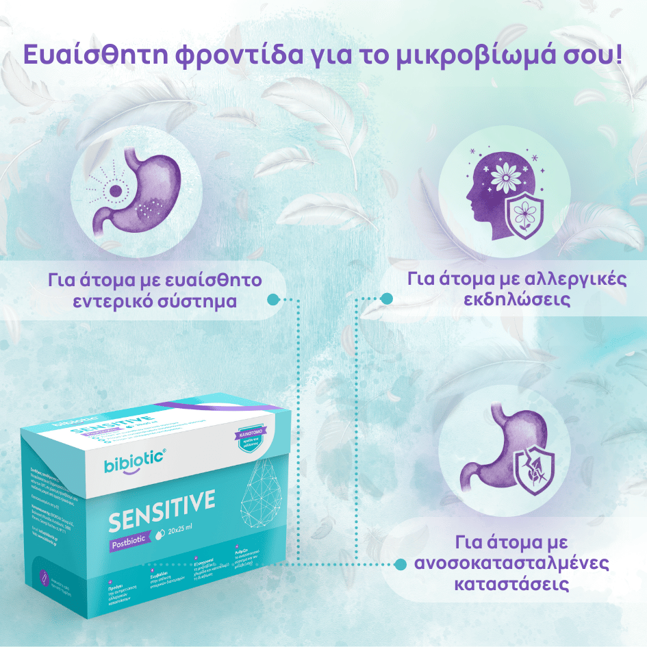 Το Bibiotic® Sensitive είναι ένα μεταβιοτικό ειδικά σχεδιασμένο για άτομα με αυξημένη ευαισθησία.