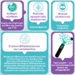 Δεν περιέχει συντηρητικά ή συνθετικές ουσίες. Έχει παραχθεί χωρίς τη χρήση γενετικά τροποποιημένων οργανισμών (ΓΤΟ) και πληροί όλα τα κριτήρια ενός αποτελεσματικού μεταβιοτικού προϊόντος.